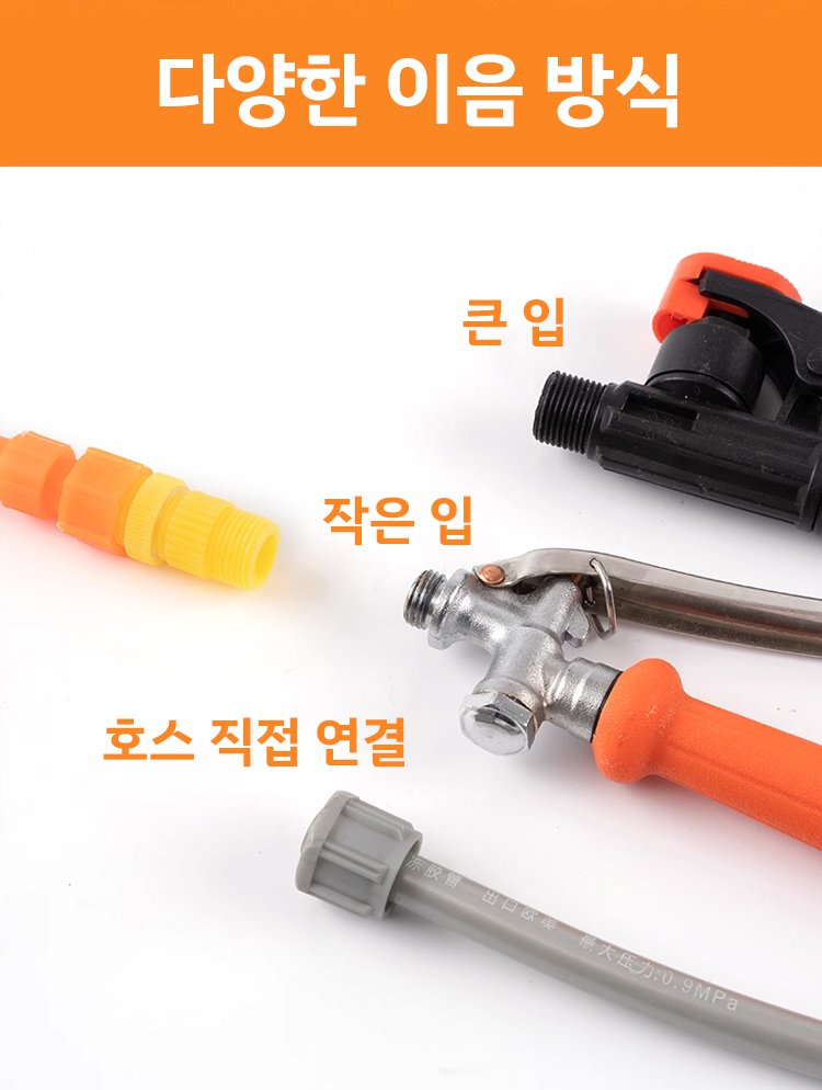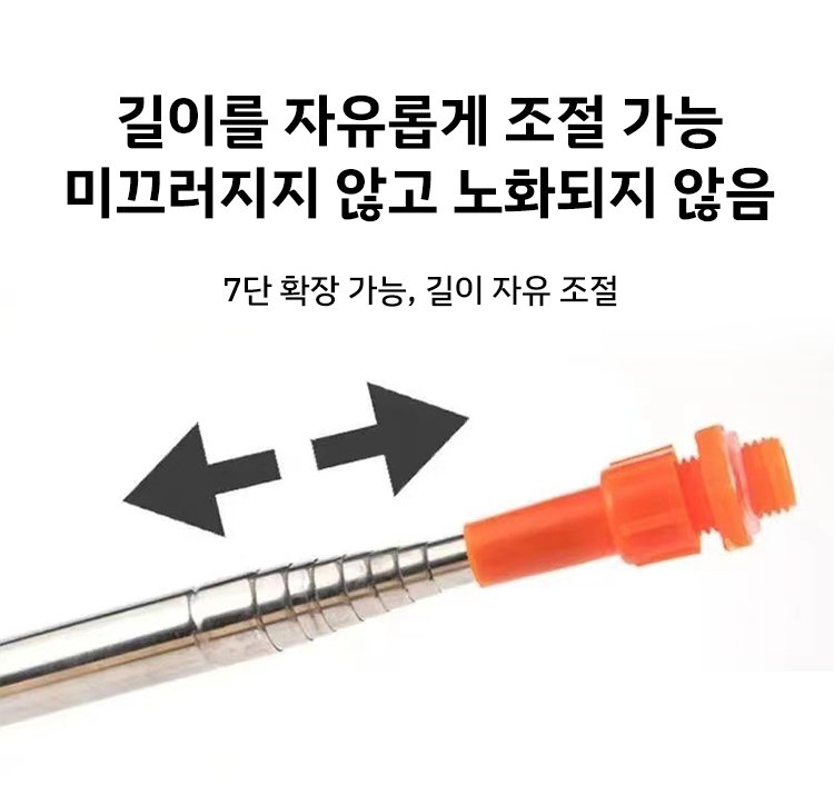분무기 노즐과 신축 호스 확대 사진
