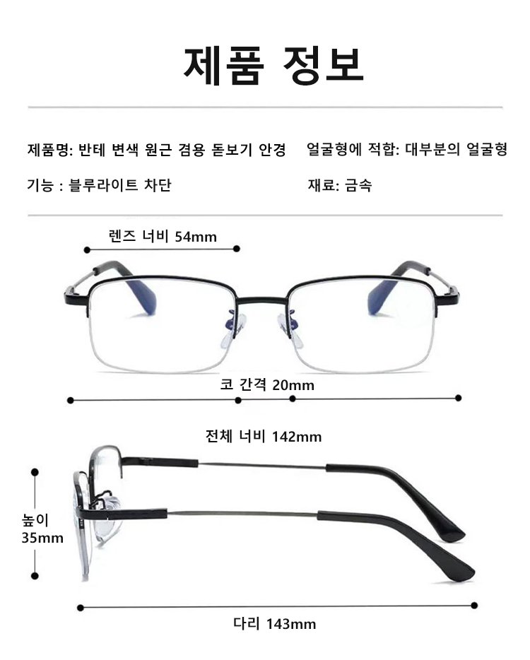반테 변색 원근 겸용 돋보기 안경