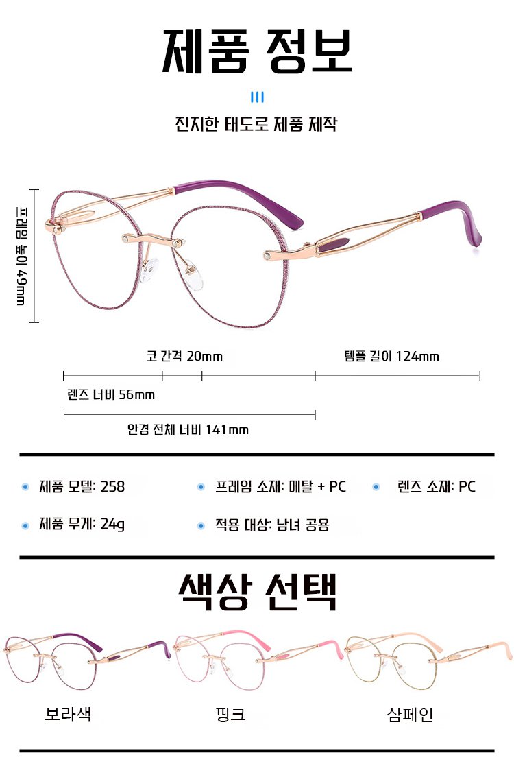 고급 무테 컷팅 가장자리 큐빅 돋보기 안경